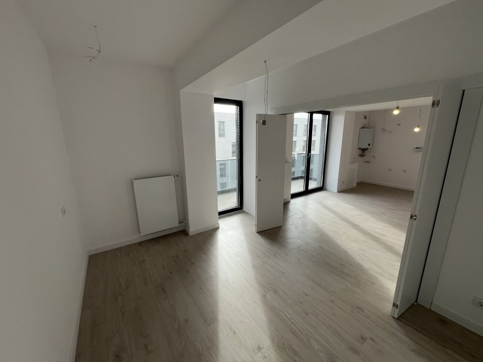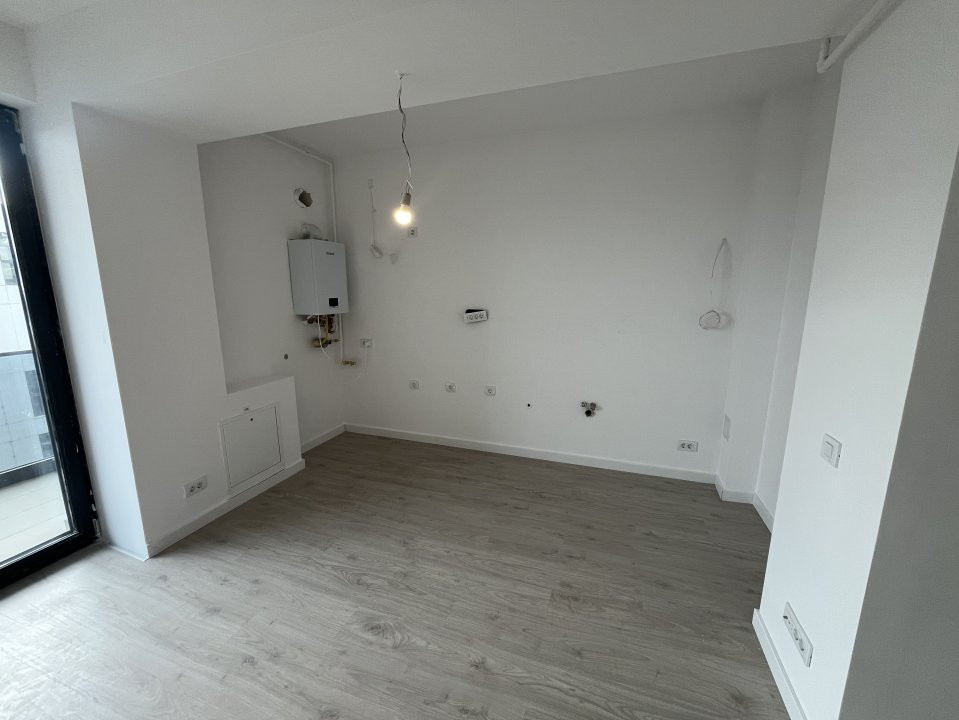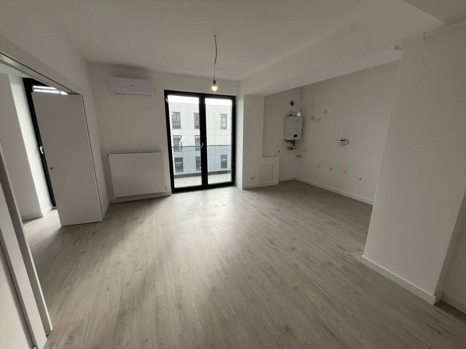 Studio spațios, cu finisaje premium și design modern și geamuri mari, opțional loc de parcare suprateran sau subteran! Bucătărie open space cu uși glisante.