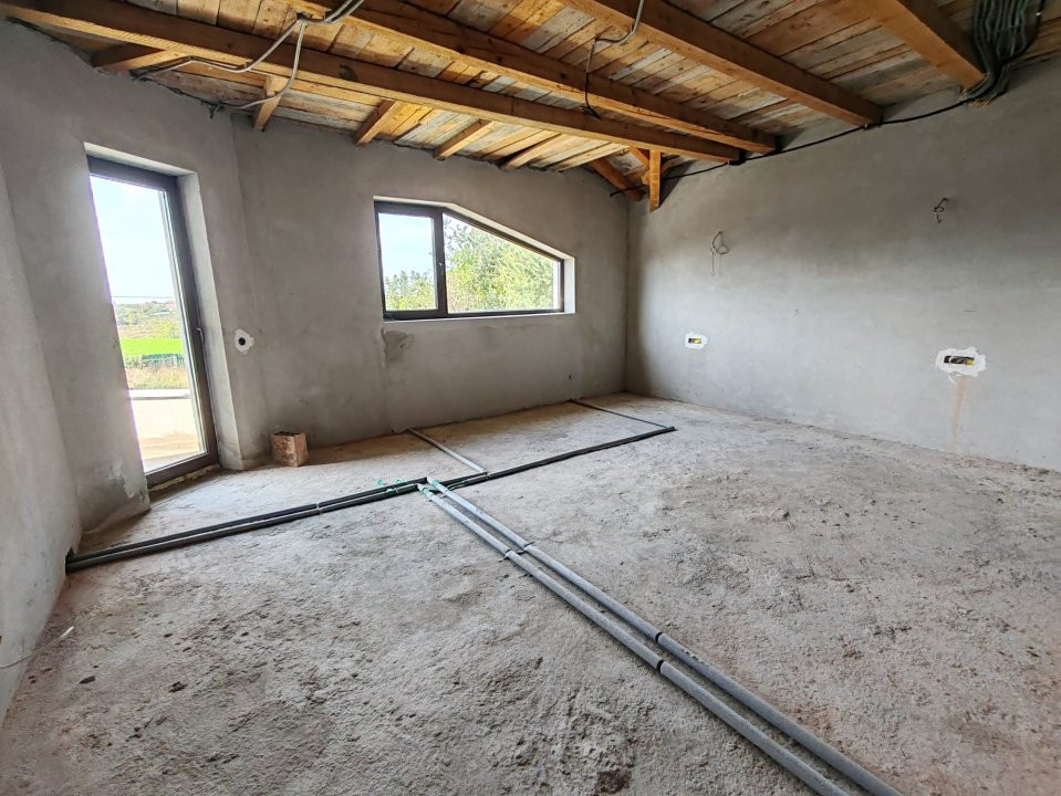 Interior – „la gri” (tencuit, driscuit, tâmplărie tripan, toate instalațiile montate).