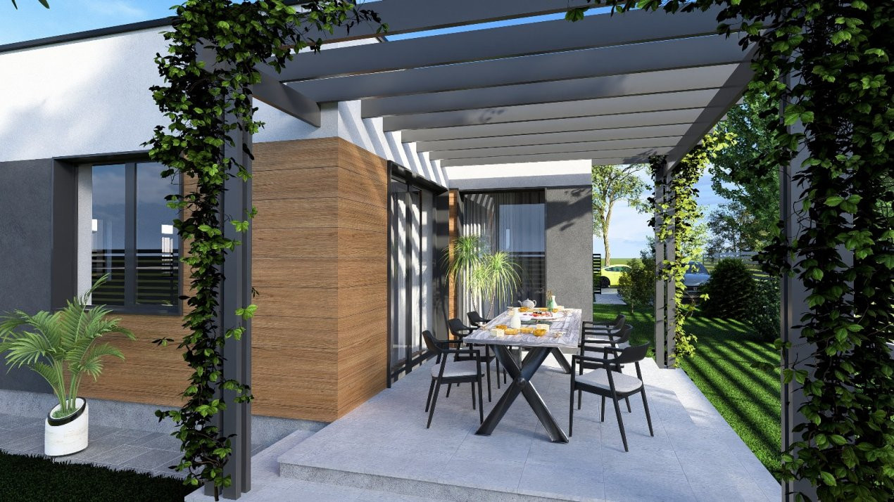 Casă modernă, construită pe un singur nivel, situată în Balotești, cu o suprafață utilă de 155 mp și teren generos de 500 mp.