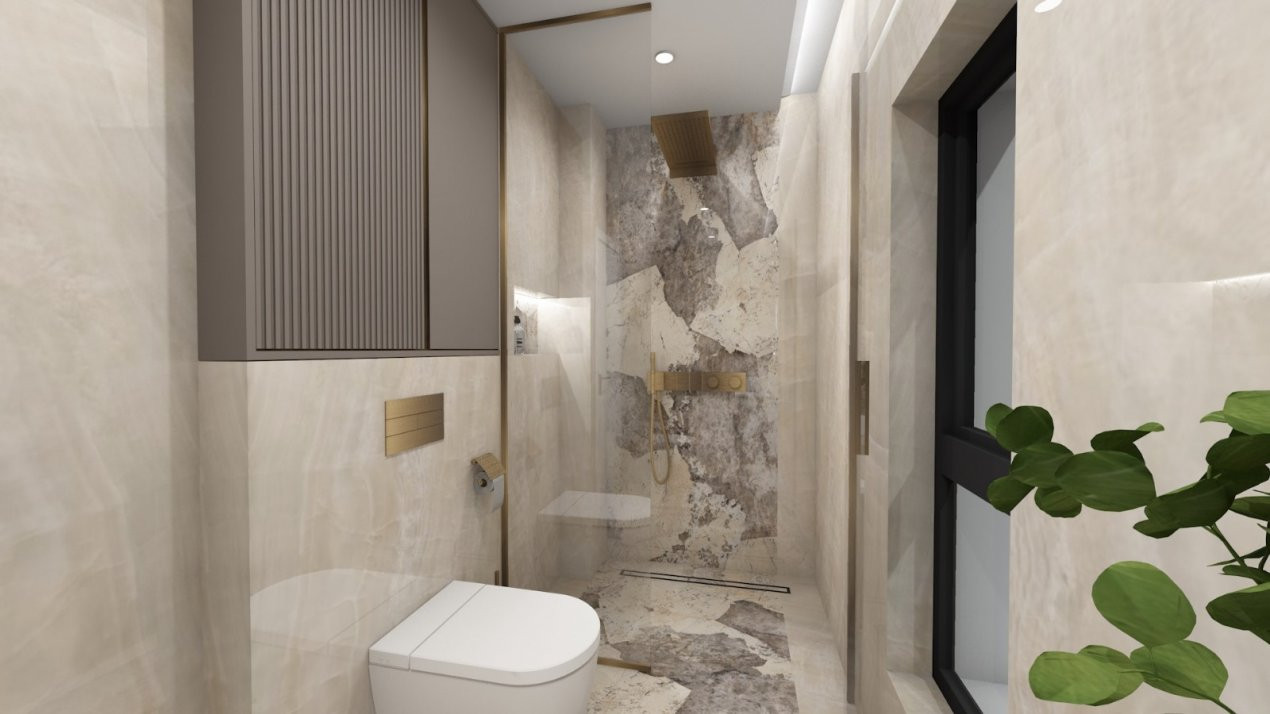 La etajul superior, găsiți două dormitoare spațioase, fiecare dotat cu baie proprie, asigurând intimitate și confort. Aceste camere sunt concepute pentru a răspunde nevoilor unei familii moderne, fiind ideale atât pentru cupluri, cât și pentru familii cu copii. Ultimul etaj adaugă un dormitor suplimentar și un birou, perfect pentru a lucra de acasă sau pentru a avea un spațiu personal de relaxare.