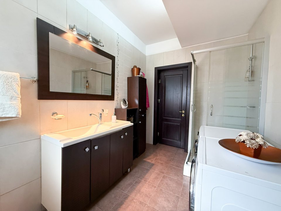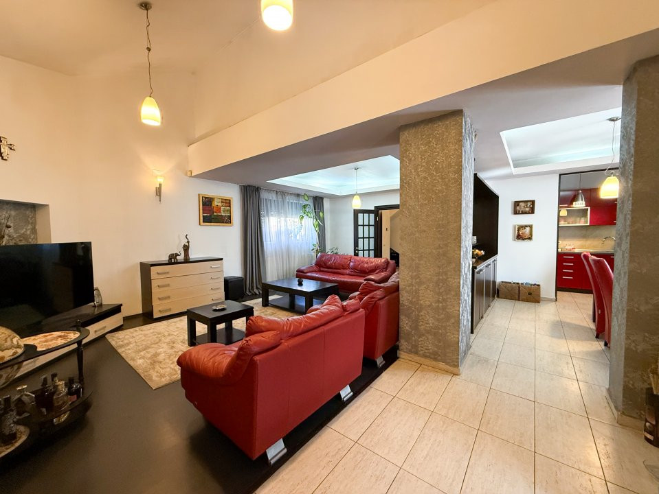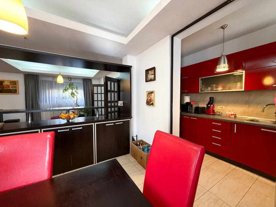 Vila este complet mobilată, iar bucătăria deschisă, modernă și funcțională, este gata să găzduiască mese festive și momente de convivialitate. Cu un design elegant și atent ales, fiecare detaliu contribuie la atmosfera caldă și primitoare a căminului.