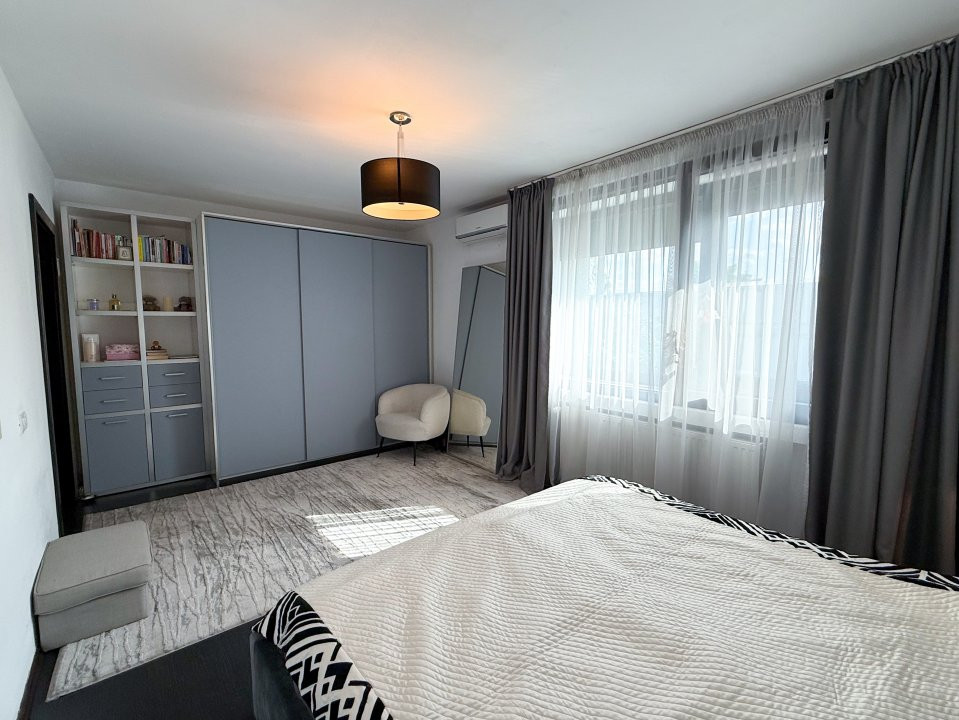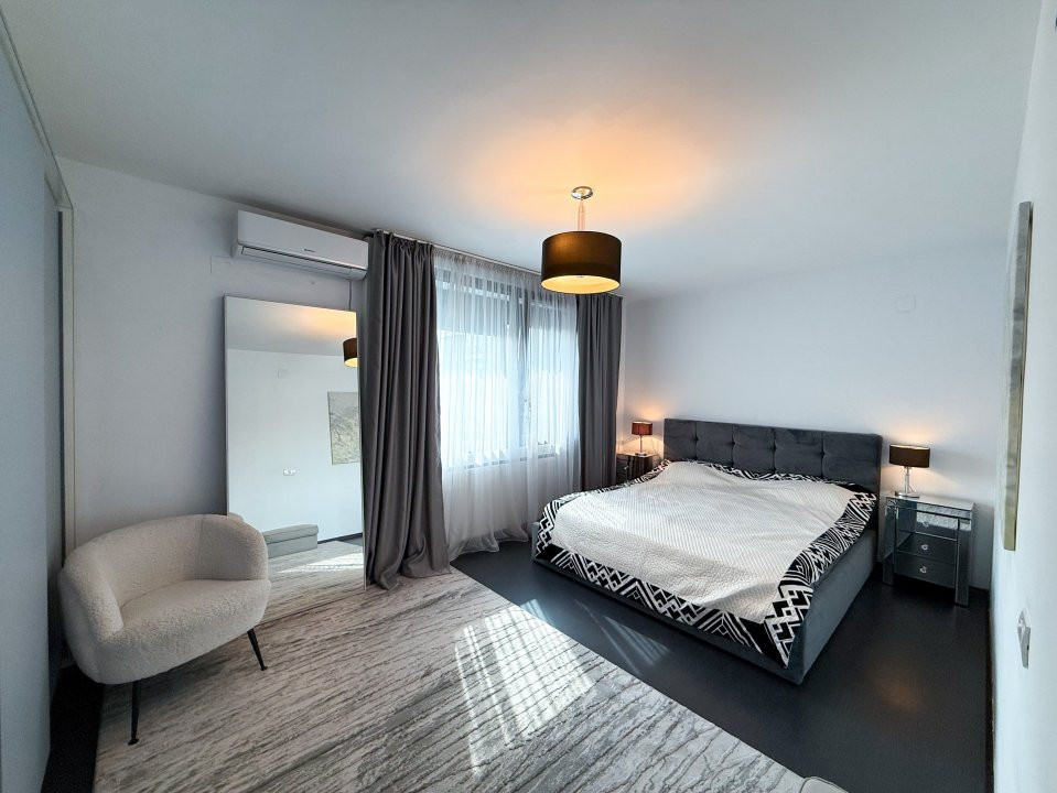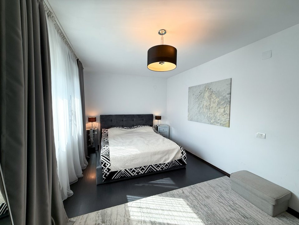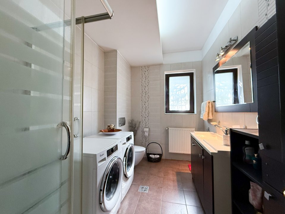 Vila este complet mobilată, iar bucătăria deschisă, modernă și funcțională, este gata să găzduiască mese festive și momente de convivialitate. Cu un design elegant și atent ales, fiecare detaliu contribuie la atmosfera caldă și primitoare a căminului.